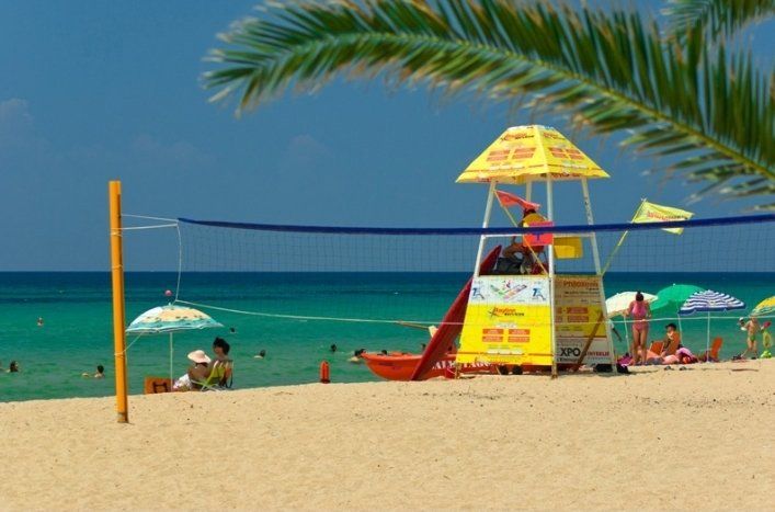 Bis zum freien Sandstrand sind es nur 30 Meter. Unser Strand wurde mit der blauen Flagge für hervorragende Wasserqualität ausgezeichnet.
