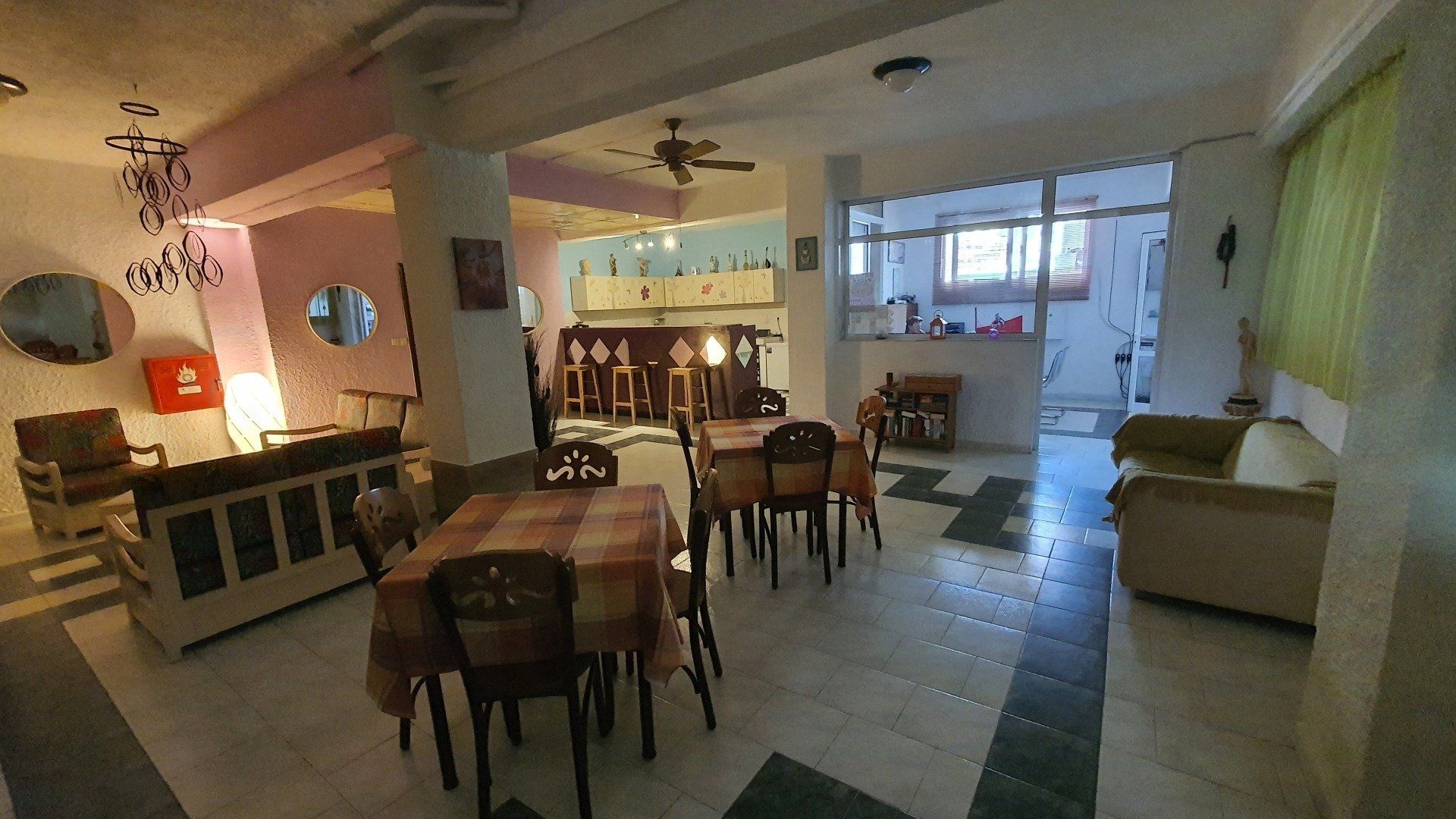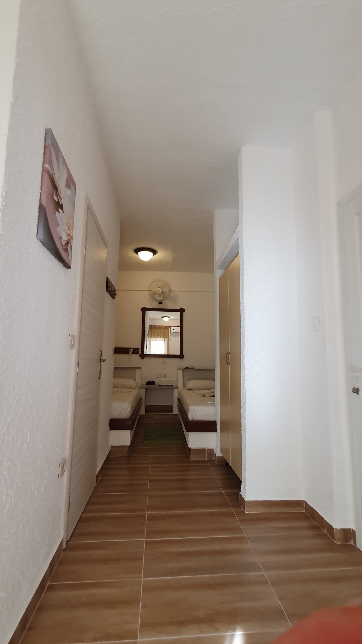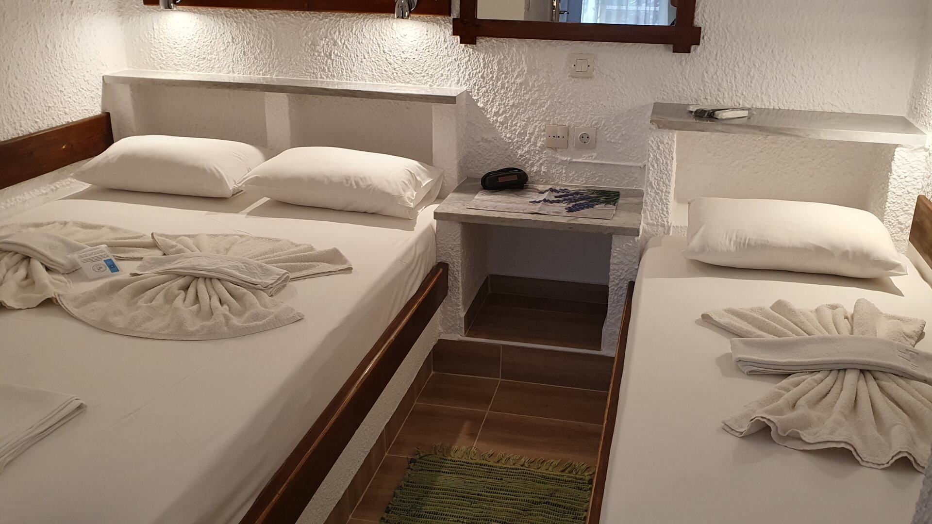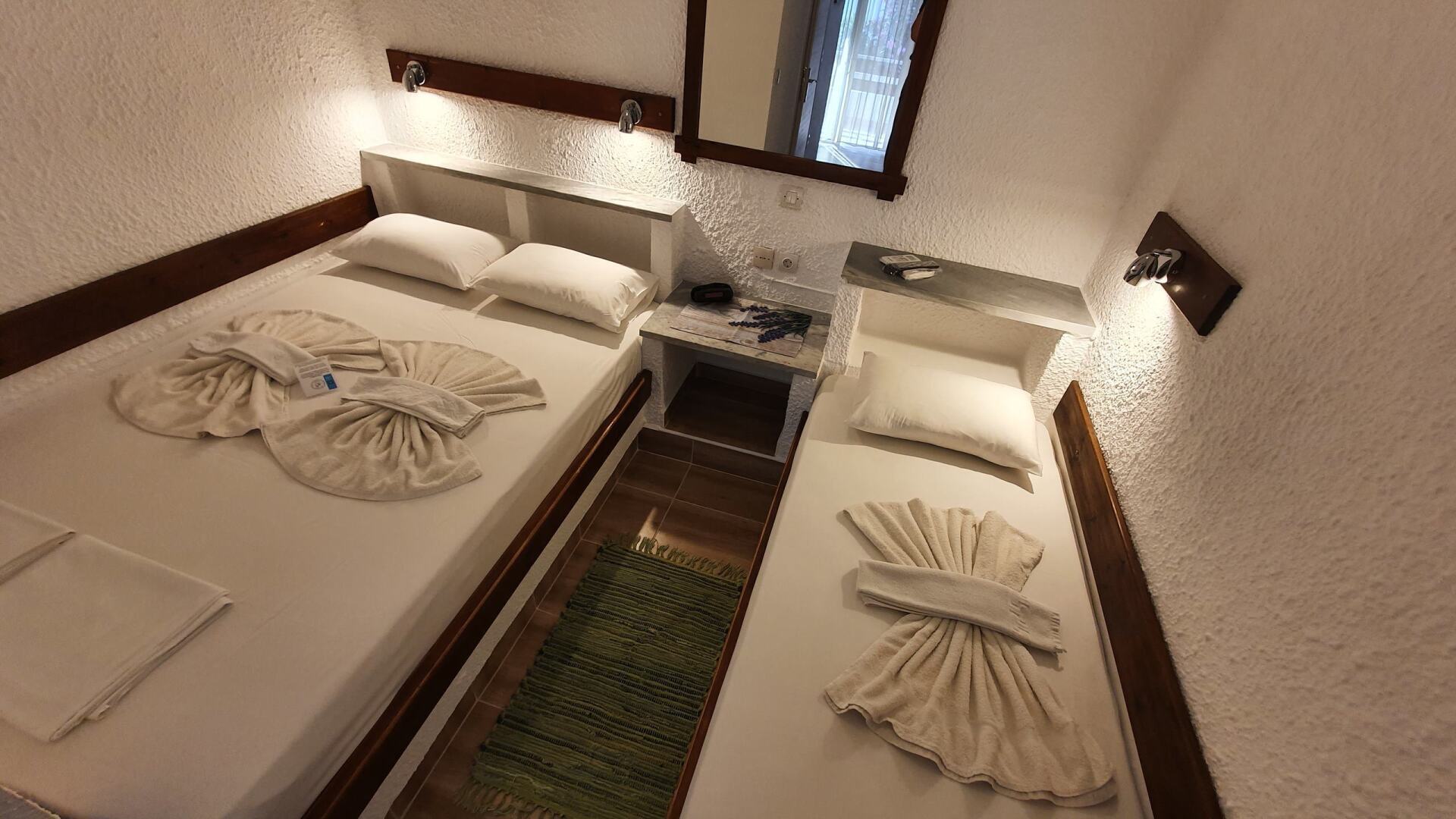 Our 4-person studios are located on both the first and second floors. Access is generally from the front. The studio features a double bed and two single beds.