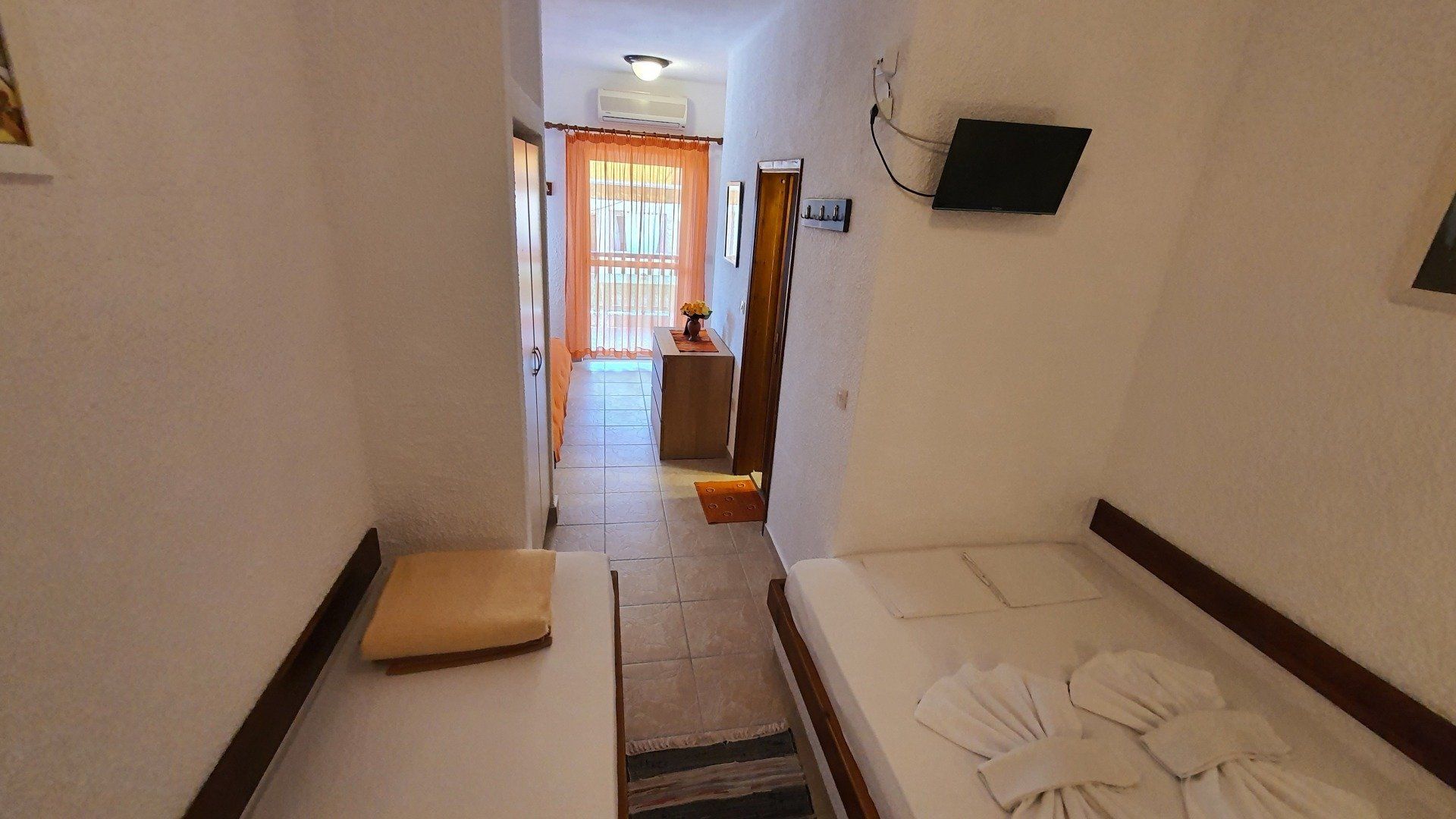 Наши трехместные апартаменты, как правило, расположены на втором этаже. Доступ возможен как спереди, так и по лестнице во дворе. В квартире есть отдельная спальня с двуспальной кроватью. В передней части находится мини-кухня и односпальная кровать.